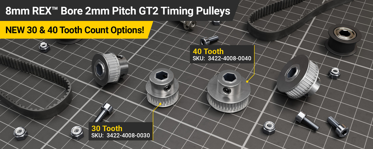 2mm Pitch GT2 Pinion Timing Pulley (8mm REX® Bore, 40 Tooth)$9.99 -