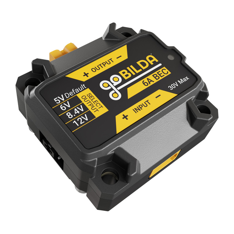 ⚠️WARNING:To prevent damage to the BEC, ensure that the devices you power with it draw a combined current of less than 6A. When powering motors, take note of their Stall Current. For instance, Yellow Jacket Planetary Gear Motors have a stall current of 9.2A, which makes them incompatible with this BEC.